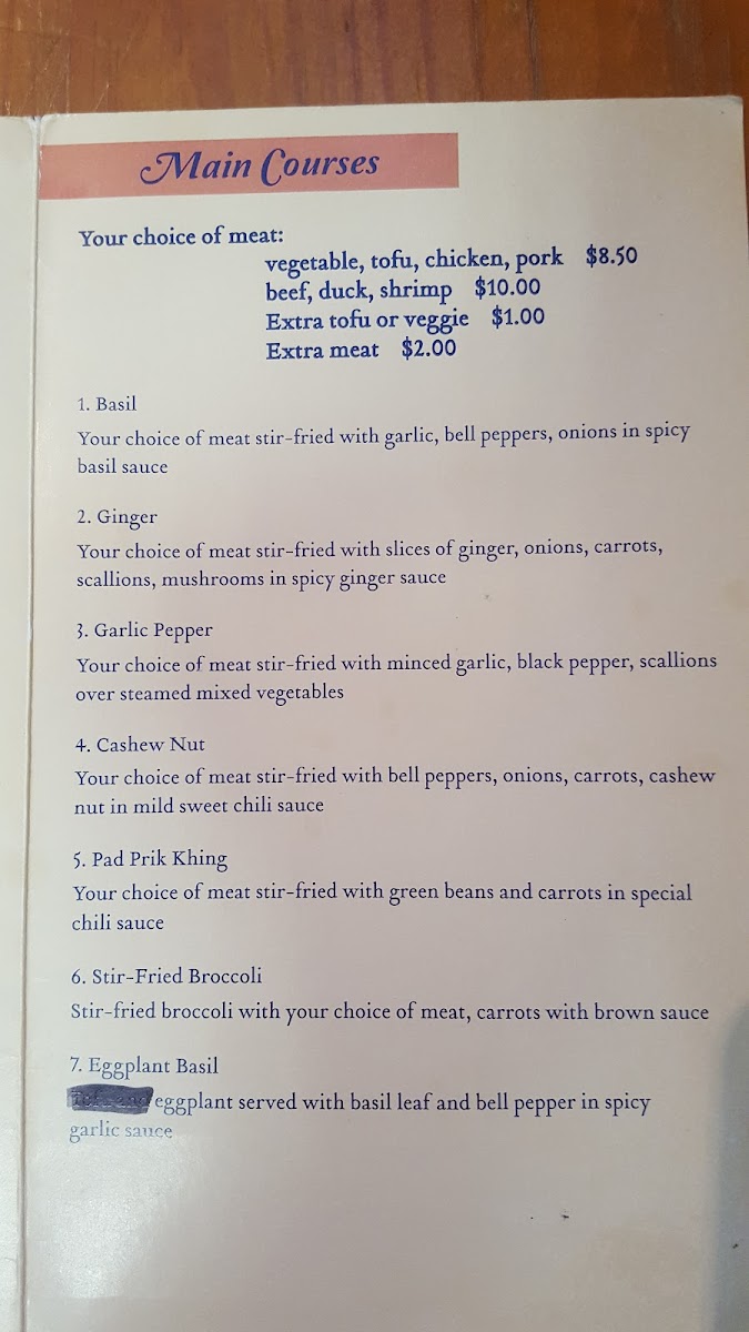 The main courses are a must-try, featuring dishes like Ginger Stir Fry, infused with fresh ginger, carrots, and mushrooms in a savory brown sauce, or the irresistible Garlic Pepper Stir Fry. For spice enthusiasts, the Pad Prik King and Basil Stir Fry promise a tantalizing kick, as echoed by our satisfied patrons.